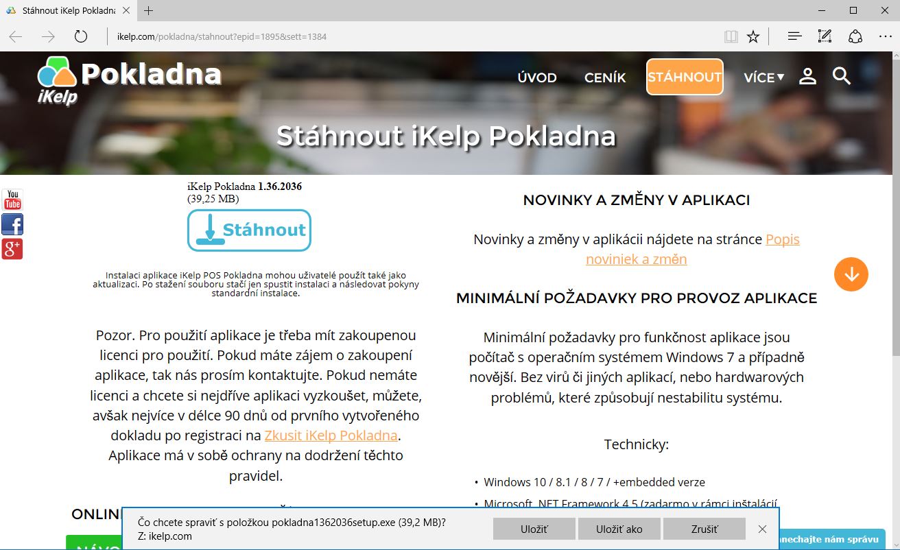 Instalaci aplikace je možné stáhnout z internetové stránky http://www.ikelp.com/pokladna nebo kliknutím na tento odkaz Stáhnout iKelp Pokladna.