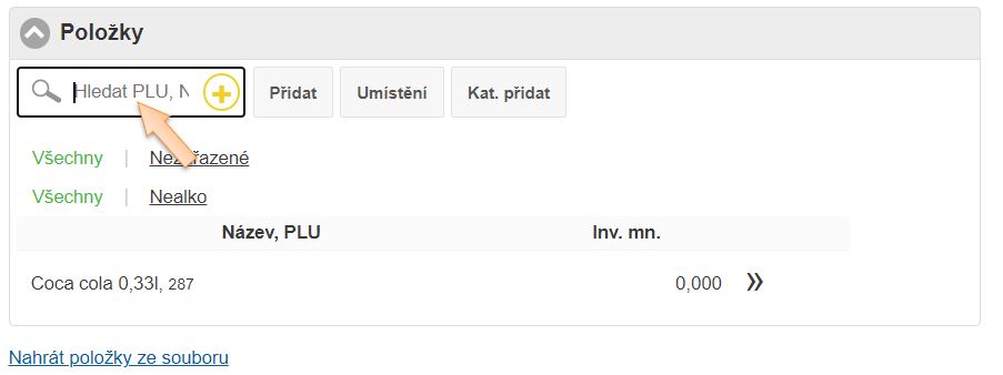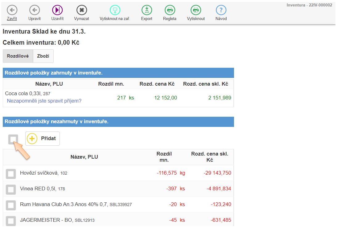 5. V části položky přidejte do inventury kteroukoliv položku s nulovým množstvím.