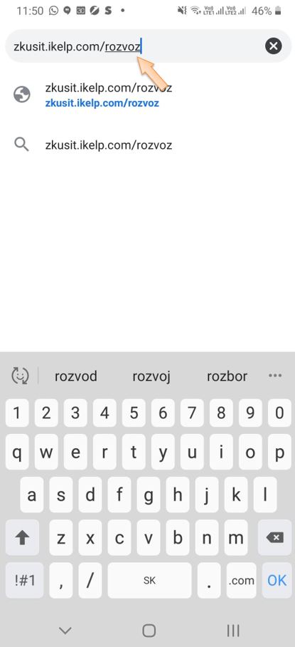 2. Zadá adresu vaší provozovny, kde si objednává online, v našem případě zkusit.ikelp.com/rozvoz.