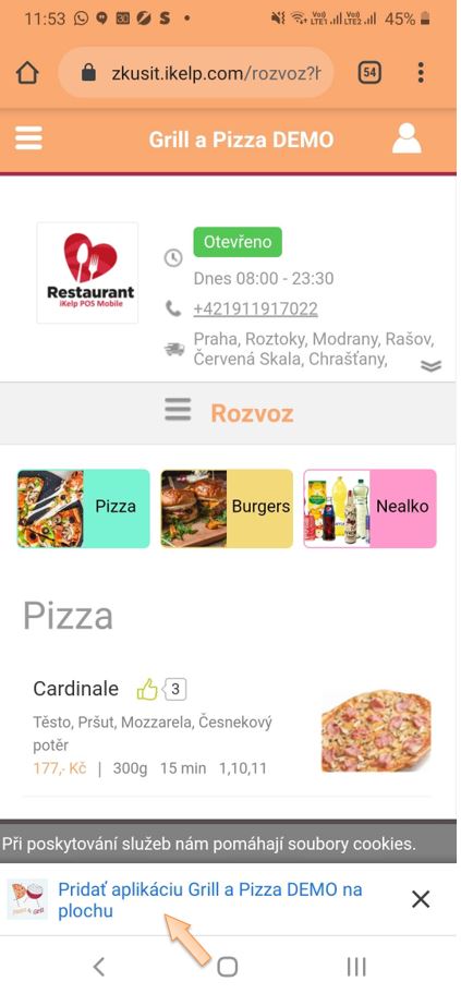 Jelikož je iKelp POS Mobile webová aplikace, není tak potřeba nic stahovat a instalovat. Pomocí jednoduché ikony na obrazovce svého telefonu bude mít váš zákazník okamžitě dostupné online objednávání.