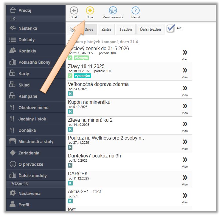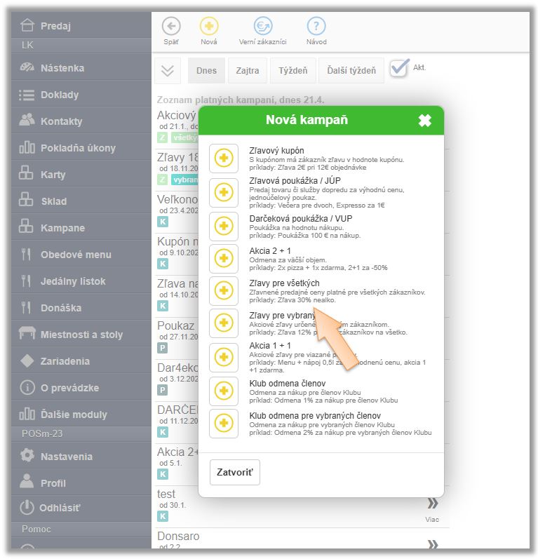 - V menu aplikácie v časti Kampane je potrebné vytvoriť novú kampaň - Zľavy pre všetkých.