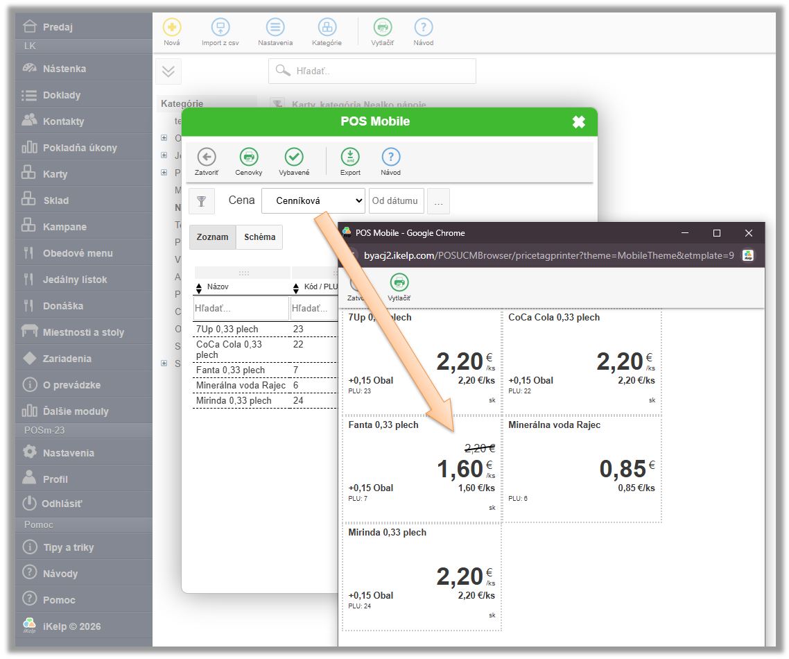 Cenovky v aplikácii iKelp Pokladňa