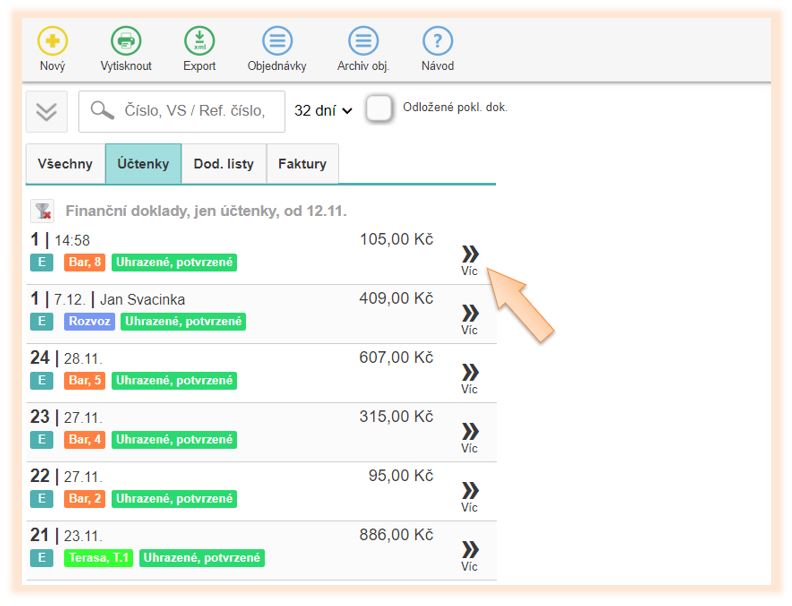 - Vyhledejte v seznamu doklad a klikněte na Více, následně Upravit.
