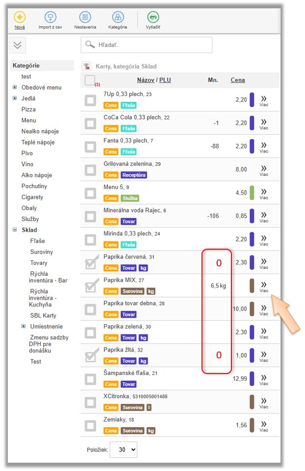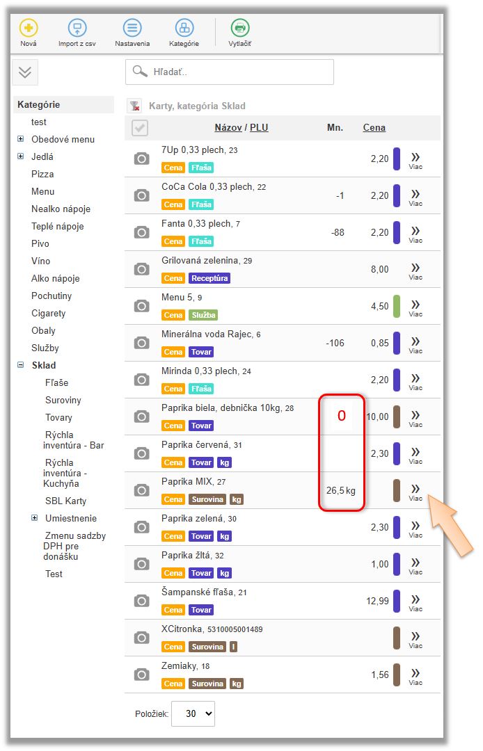 - Karta typu Surovina. (V našom prípade Paprika MIX.)