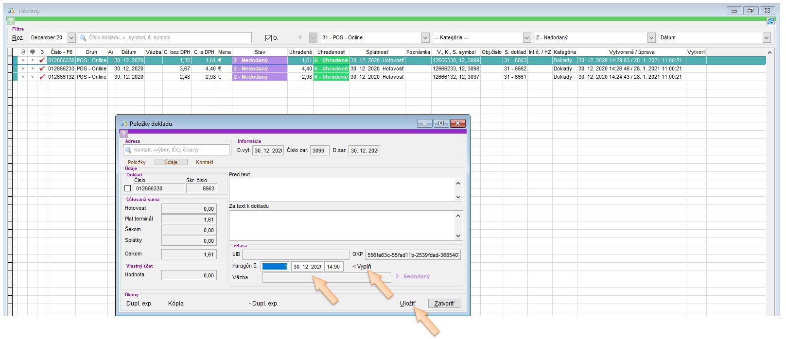 10. Po odoslaní dokladu sa v detaile dokladu doplnia údaje OKP a UID.