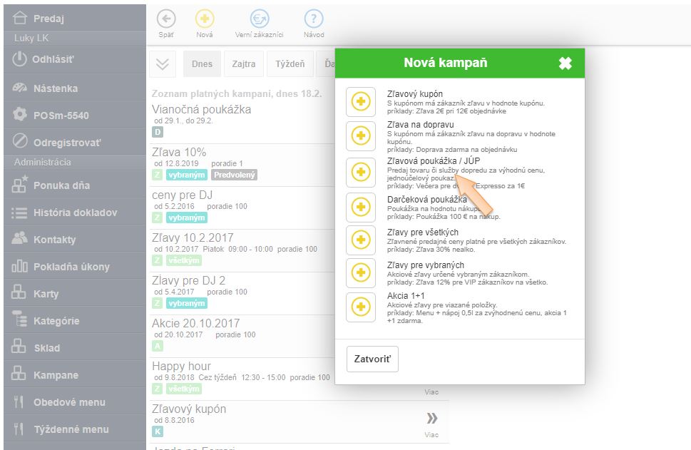 3. Vyberte zo zoznamu typ kampane Zľavová poukážka / JÚP.