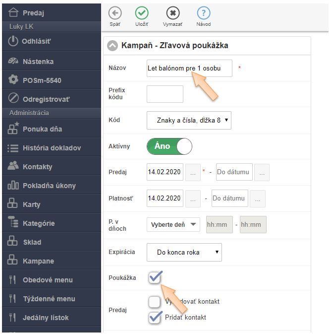 • Po predaji poukazu sa automaticky v danej kampani vygeneruje poukaz s kódom.