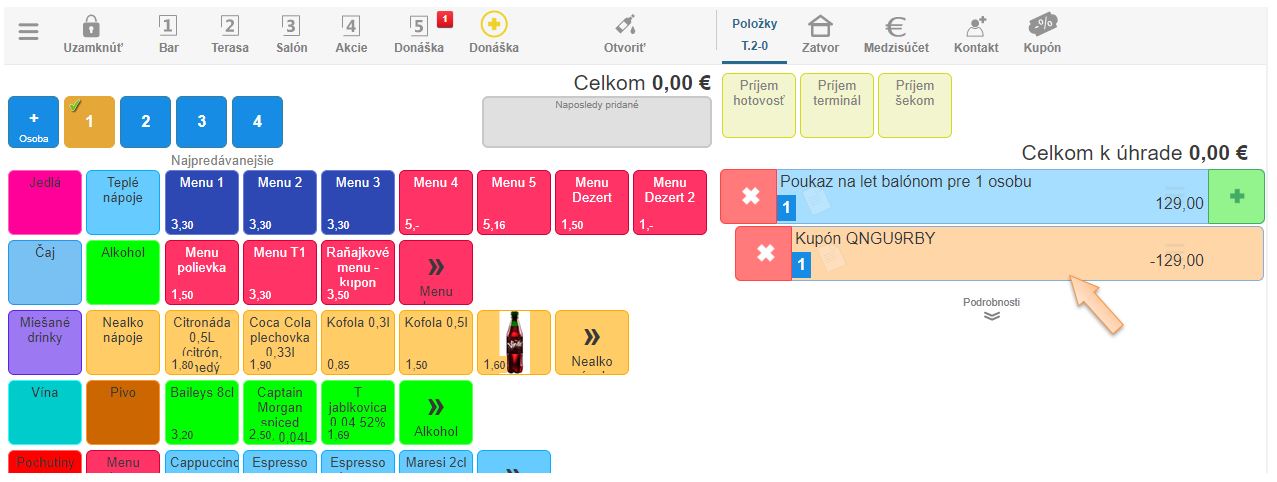3. Do predaja sa automaticky pridá služba / tovar naviazaná na daný kupón a kupón, ktorého hodnota sa automaticky odpočíta z celkovej ceny.