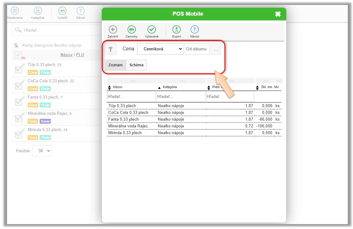 - Dátum - ak je definovaných viacero cenníkov, je možné vybrať tlač cien z cenníka platného v uvedenom dátume.